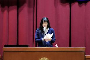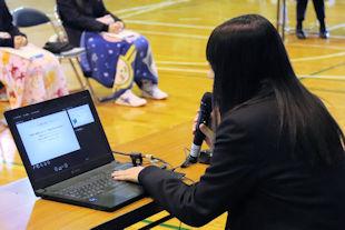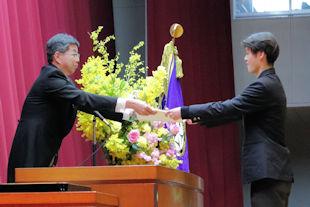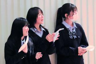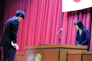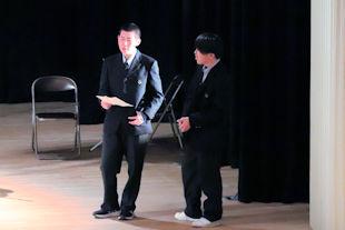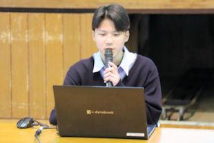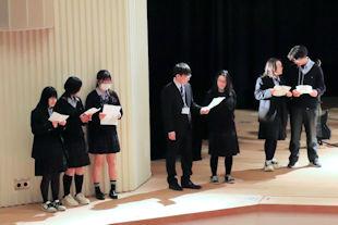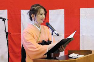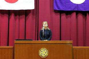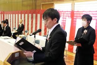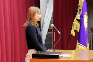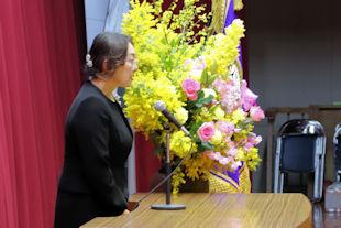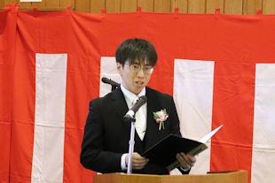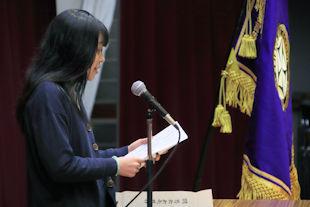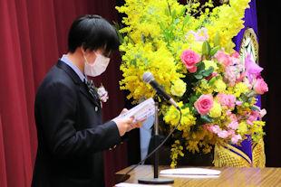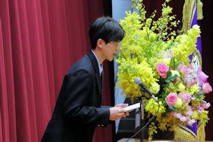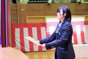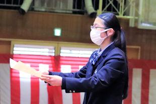 続いて、年次代表幹事生徒が入会の挨拶を行い、3年間支援していただいた同窓会の皆さんに感謝の言葉を伝えるとともに、本校同窓会員としての誇りを胸に社会で活躍することを誓いました。