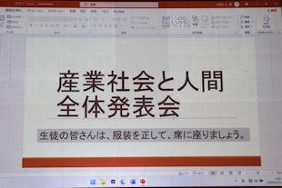1年次生が1年間にわたり、学校設定科目「産業社会と人間」(産社)の活動で学習した成果を発表する「全体発表会」を開催しました。
