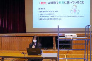 1年間にわたり高齢者福祉施設などで実習を行った成果を報告する「介護実習報告会」を行いました。