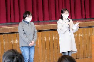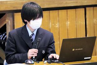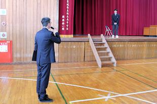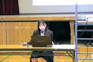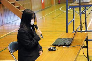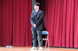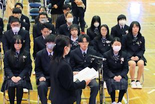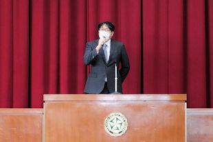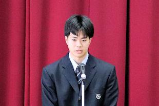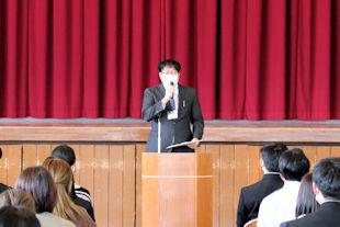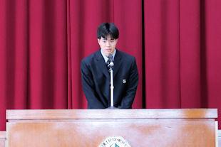 続いて、新生徒会長があいさつをし、6月までの任期中の抱負を話してくれました。