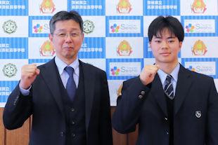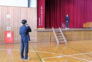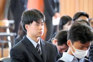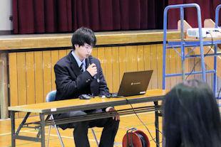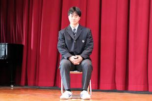 この日は、出場する吉岡君を激励するために壮行会が開かれ、校長先生と生徒会長からの激励の言葉に続いて、吉岡君に大会に向けた意気込みを語っていただきました。