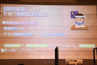 最後に生徒の代表が各施設の担当者の方に感謝の言葉を贈るとともに、卒業後の進路先での抱負を語りました。