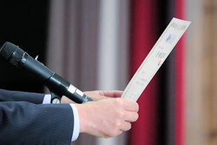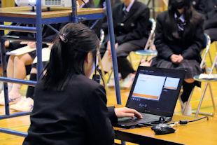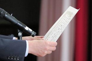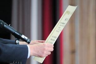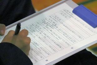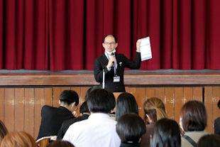 最後に、選挙管理委員長から投票の仕方などについて説明があり、生徒はその場で投票用紙を受け取り、投票に臨みました。