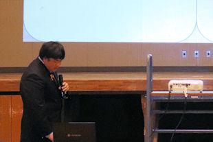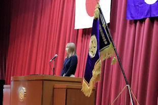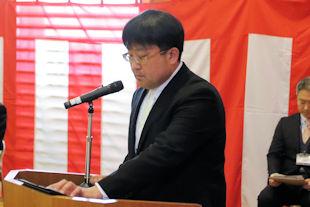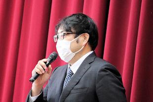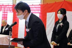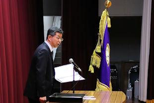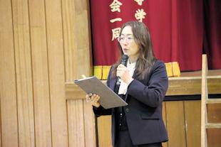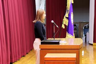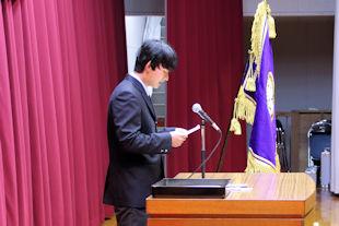 続いて、新会長があいさつを行い、半年間の抱負を述べるとともに、行事などへの積極的な参加と協力を求めました。