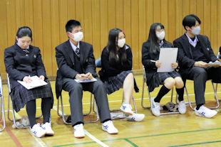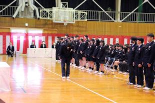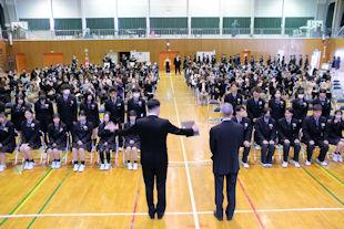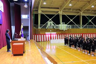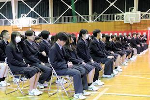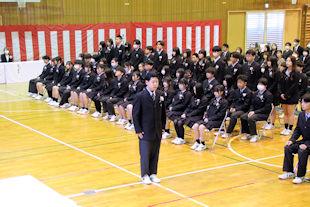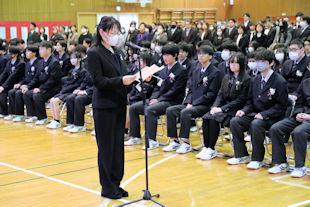 顧問の先生から選手の紹介に続いて、校長先生と生徒会長から選手たちに激励の言葉が贈られました。