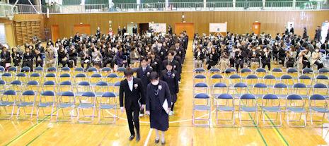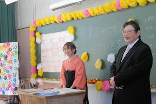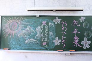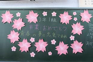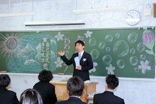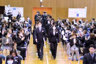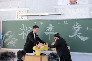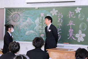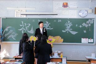 式終了後、卒業生は3年次の先生に見送られながら退場し、教室で最後のホームルームに臨みました。