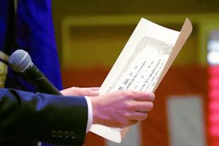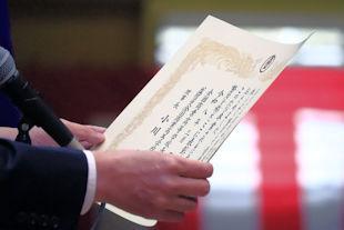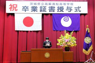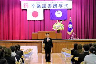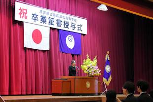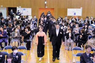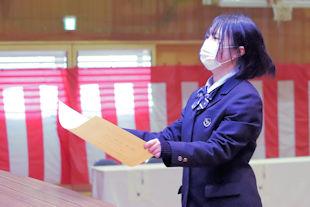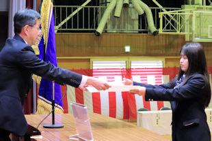 続いて、式辞の中で校長先生は、この1年間の学校行事を振り返るとともに、卒業生に向けて「これからは社会に目を向け、学びや経験を通して『自分力』を磨いてほしい」とメッセージを贈りました。