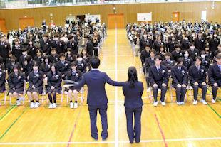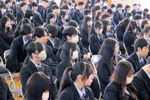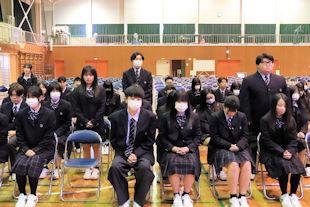 令和7年度最後の授業日となったこの日、終業式が行われ、校長先生と生徒支援部長の先生から新年度に向けた春休みの過ごし方などについてお話しいただきました。