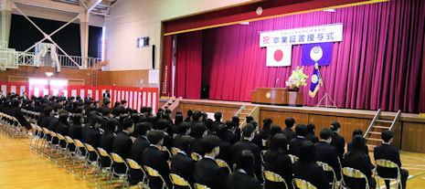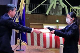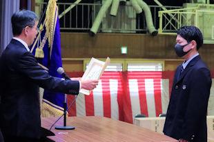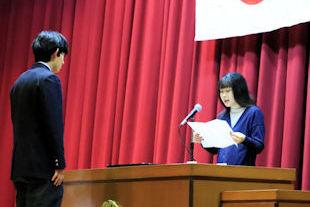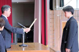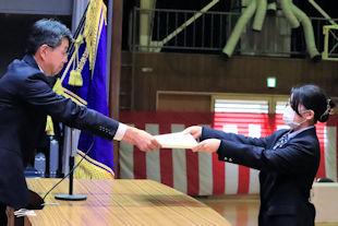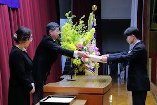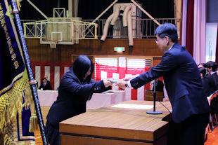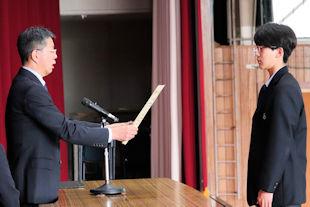 卒業式を翌日に控えたこの日、3年次生関係の表彰伝達式が行われ、各系列で優秀な成績を収めた生徒や顕著な功績があった生徒に表彰状が贈られました。