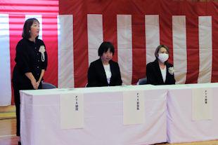 入学式後、PTA入会式を開催し、PTA会長、校長先生からごあいさつをいただくとともに、PTA担当の先生が会則の説明などを行いました。
