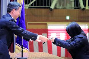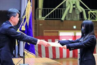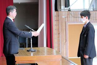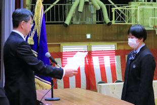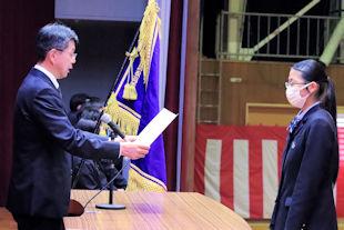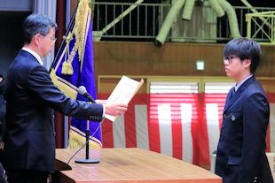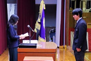 後期生徒会役員任命式を開き、先日の生徒会役員選挙で当選を果たした生徒会役員に任命状が手渡されました。