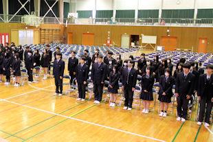 生徒会長のあいさつに続いて、生徒全員で校歌を斉唱しました。