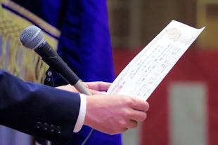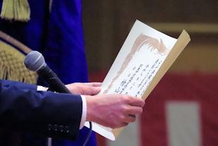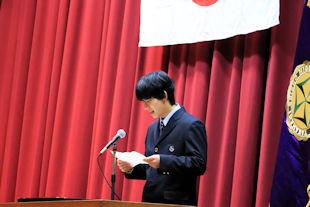 式では、校長先生の式辞に続いて、新入生代表の生徒が宣誓の言葉を述べました。