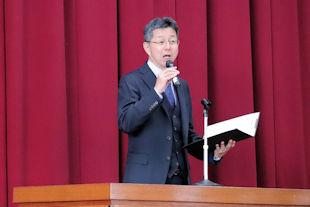 この日は、実行委員長である本校PTA会長のあいさつに続き、本校校長が、この20年間の歩みを振り返り、式辞を述べました。