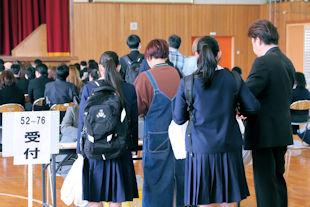令和8年度入学者向けの合格者説明会が実施され、入学者選抜を勝ち抜き、合格通知を手にした101名の生徒および保護者の皆さんに、本校の概要や入学までの諸手続き、春休みの過ごし方などについて説明を行うとともに、教科書や体育用具などの販売を行いました。