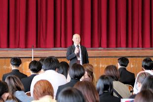 続いて行われた、始業式では、新任の校長先生、生徒支援部長そして進路支援部長の先生からお話をいただきました。